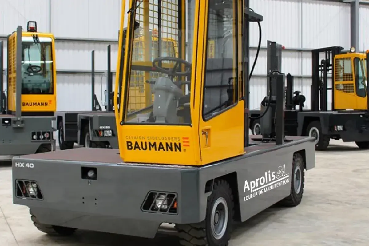 Baumann propose une gamme de chariots latéraux aptes à répondre aux exigences de manutention de charges longues dans l’industrie du bois, de l’acier, de profilages acier et aluminium, de tubes plastiques et dans la logistique.