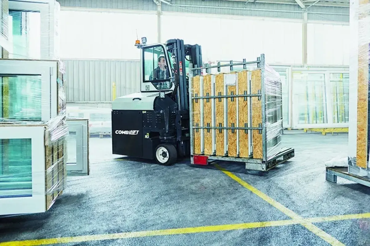 Les chariots élévateurs multidirectionnels de la gamme Combi-CB peuvent transporter des charges palettisées ainsi que des charges longues grâce au mode latéral.