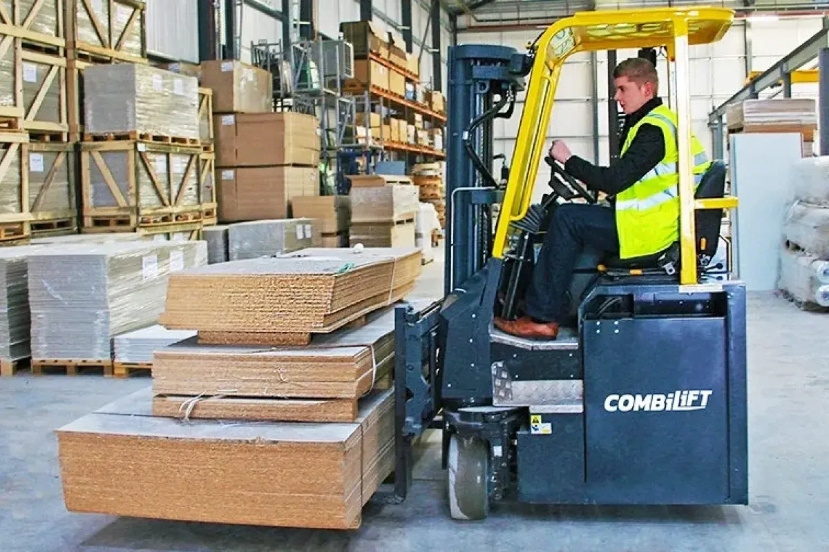 Les chariots élévateurs multidirectionnels de la gamme Combi-CB peuvent transporter des charges palettisées ainsi que des charges longues grâce au mode latéral.