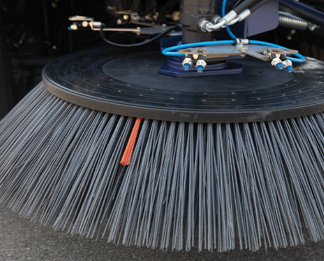 L'utilisation de l'eau permet de limiter les poussières sur les brosses latérales. Un système de récupération et de recyclage de l'eau équipe les balayeuses de voirie. Cela permet de réutiliser pendant les opérations de balayage jusqu'à 70% de l'eau déjà utilisée.