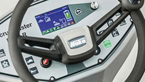 - Hako-DaytimeCleaning: Fast recharging system that increases battery range by means of opportunity recharging at any 230 V power socket if capacity begins to drop.