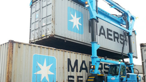 Carretillas telescópicas de cadenas, destinadas a la carga y descarga de contenedores y cargas diversas, desde el camión hasta el suelo. La función telescópica permite apilar dos contenedores.