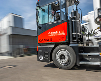La precisión del tractor logístico KAMAG PT es una verdadera ventaja para los movimientos rápidos de remolques.
