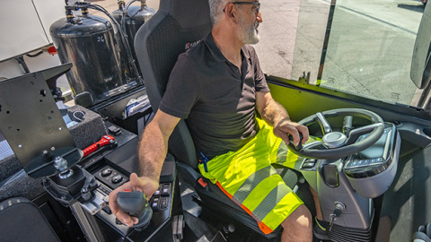 Un joystick multifonction est présent sur la console centrale. De plus, les opérateurs pourront lire facilement toutes les informations de fonctionnement du tracteur logistique grâce à un écran multifonction 7 pouces intégré dans la colonne de direction.
