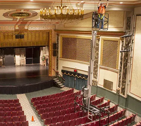 Levée électrique et hauteurs de travail de 4.50 m et 5.10 m. Idéal pour les travaux de finition, d’électricité, d’entretien et d’aménagement de magasin de détail.