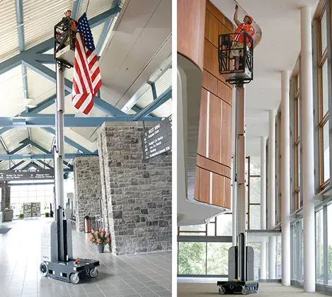Conçues pour un accès en hauteur dans des espaces exigus, les plateformes à mât vertical sont manœuvrables et mobiles. Efficaces, elles améliorent la productivité de nos clients dans les secteurs industriels, les complexes commerciaux, les aéroports ou encore les bâtiments publics. Elles représentent également une alternative sécurisée qui renforce la confiance des opérateurs au travail.