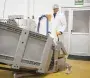 Les retourneurs et basculeurs ULMA Inoxtruck sont dotés d’un système d’inclinaison allant jusqu'à 130° qui permet de manipuler et de renverser des charges telles que des bidons, des chariots cutter ou des eurobins sur des convoyeurs à bandes, dans les conteneurs, les pétrins, les broyeurs, les mélangeurs et les bacs Europe de manière totalement ergonomique et en réduisant les efforts.